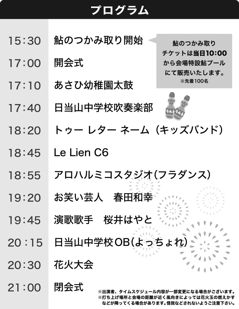 2025年ひなたやま夏祭りのプログラム情報は下記の通りです。
